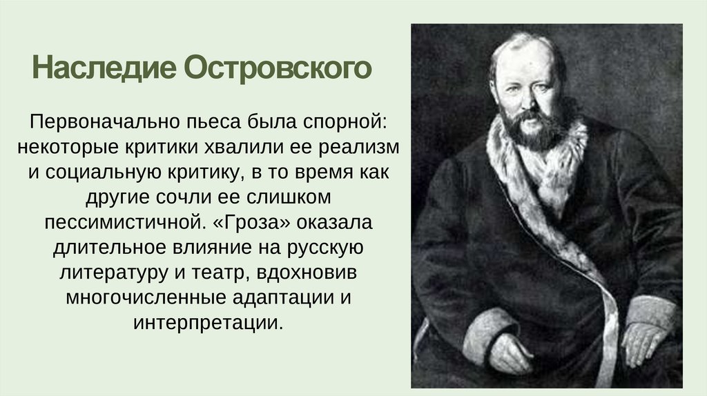 Наследие ОстровскогоПервоначально пьеса была спорной: