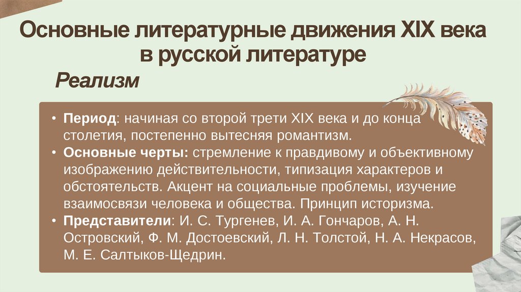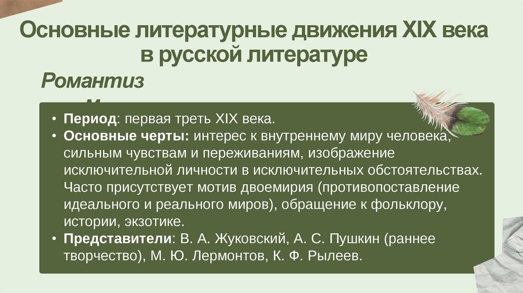 Основные литературные движения XIX векав русской литературе