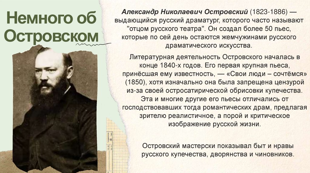 Влияние Островского нарусский театр