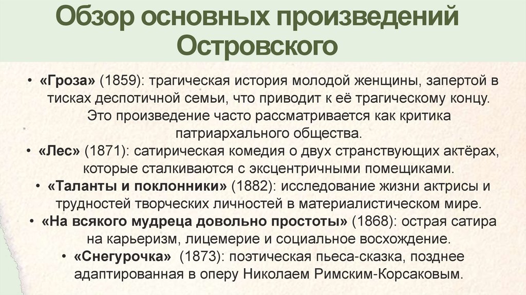 Обзор основных произведенийОстровского