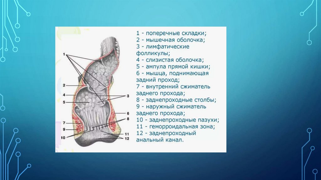 АНАТОМИЯ ПРЯМОЙ КИШКИ• Прямая кишка является конечным отделом пищеварительного тракта.