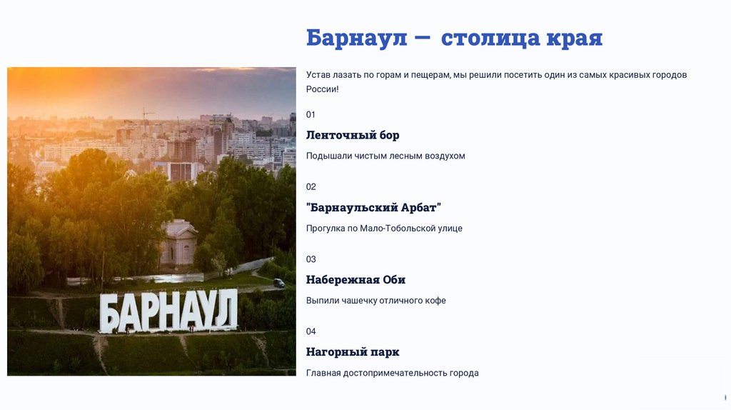 Барнаул — столица краяУстав лазать по горам и пещерам, мы решили посетить один из самых красивых городов
