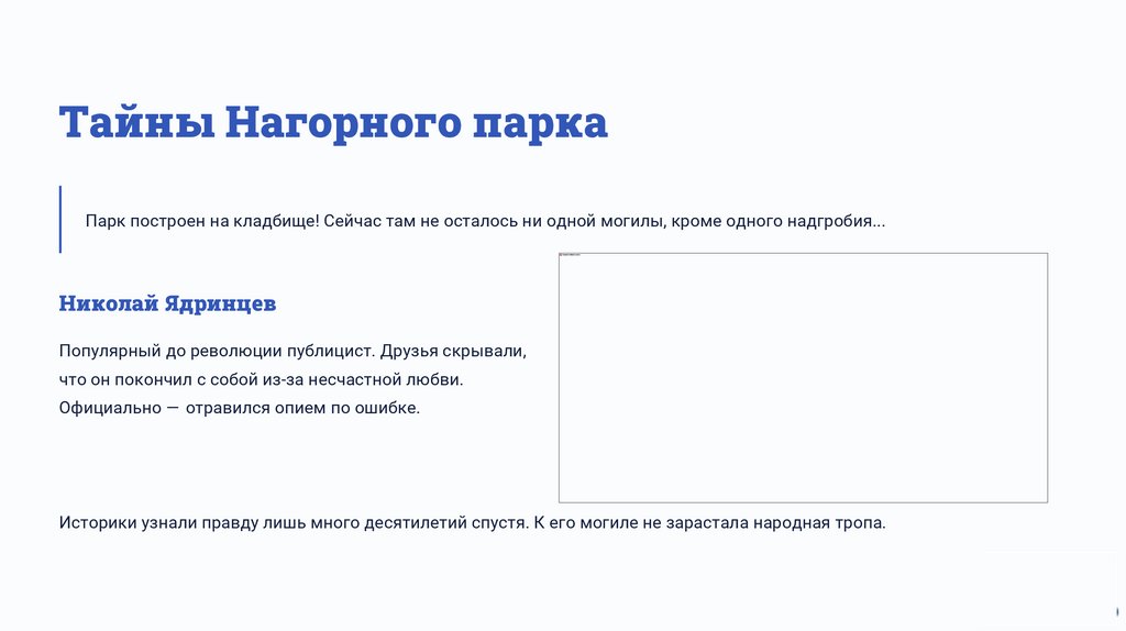 Тайны Нагорного паркаПарк построен на кладбище! Сейчас там не осталось ни одной могилы, кроме одного надгробия...