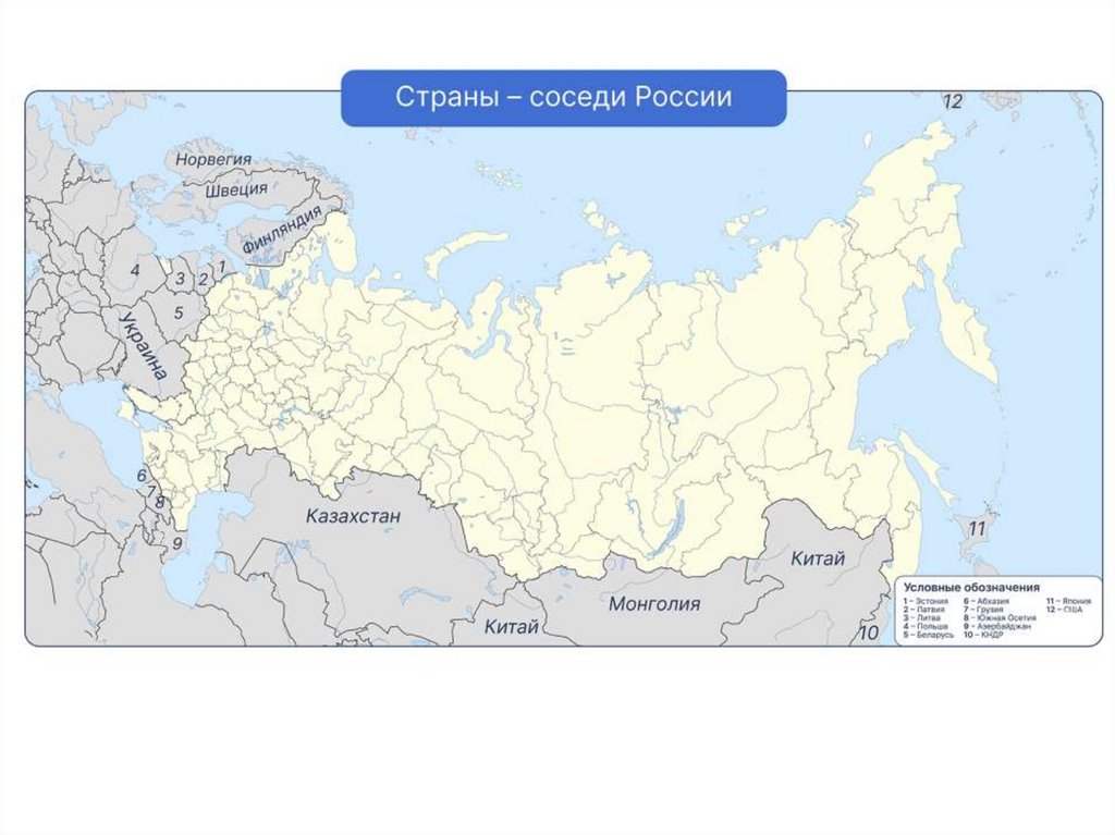 Сделай вывод о количестве стран — соседей Российской Федерации,