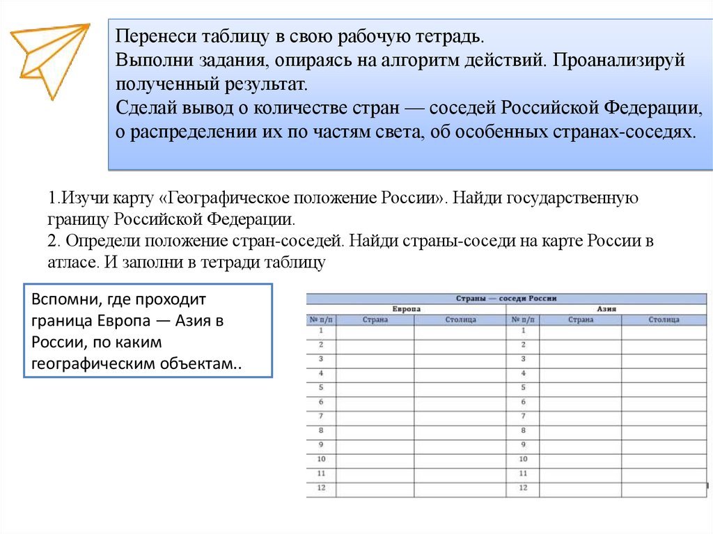 2. Определи положение стран-соседей. Найди страны-соседи на карте России в