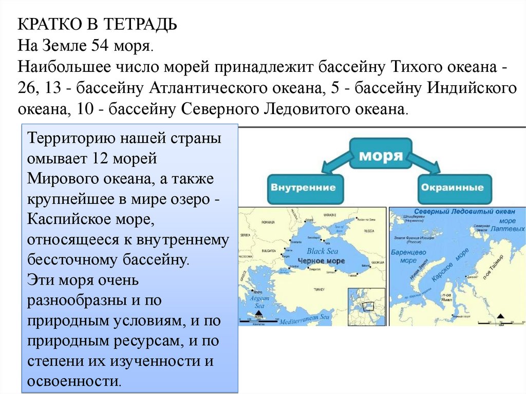 КРАТКО В ТЕТРАДЬНа Земле 54 моря.