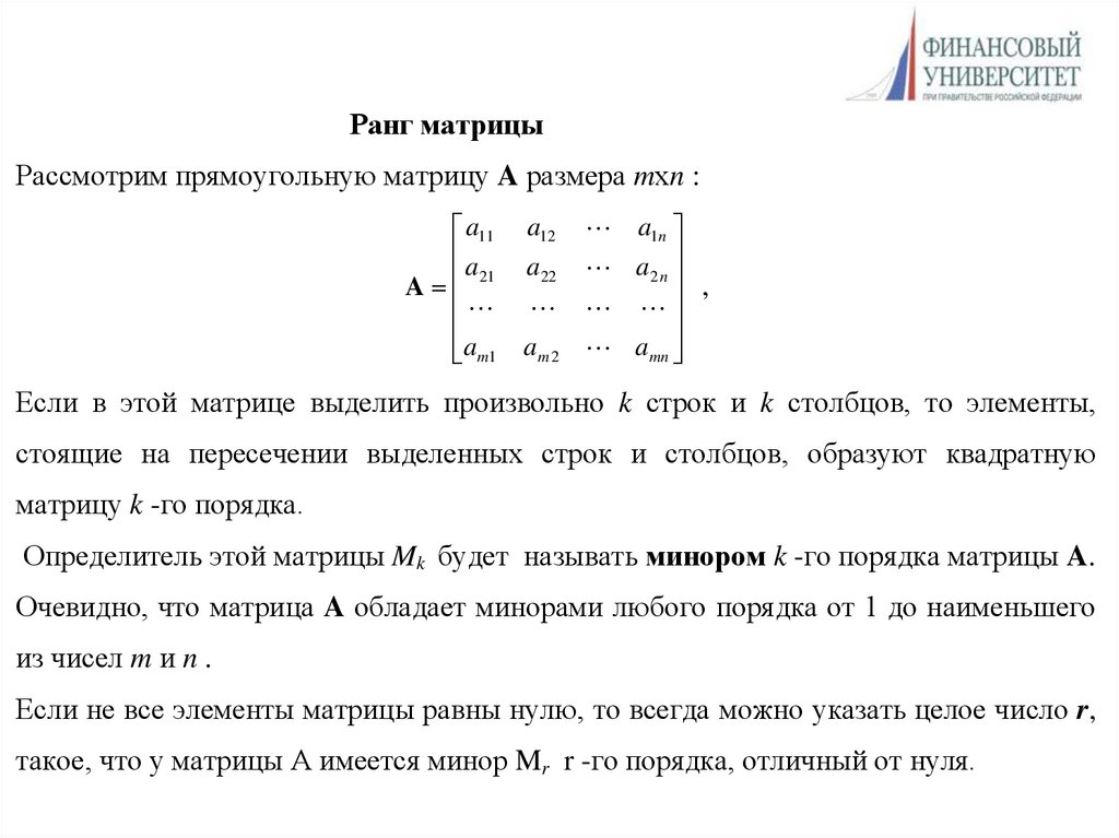 Теорема. Если в матрице какой-нибудь минор порядка r не равен