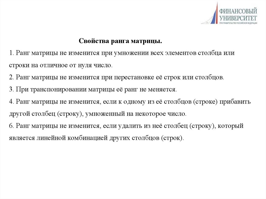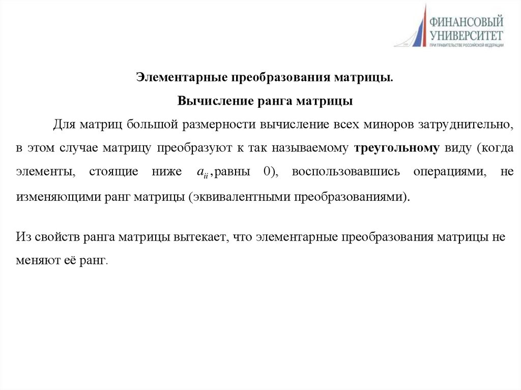 Из свойств ранга матрицы вытекает, что элементарные преобразования матрицы не