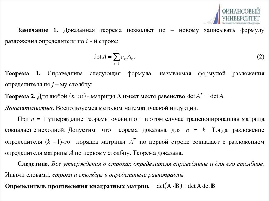 Следствие. Все утверждения о строках определителя справедливы и для его столбцов.