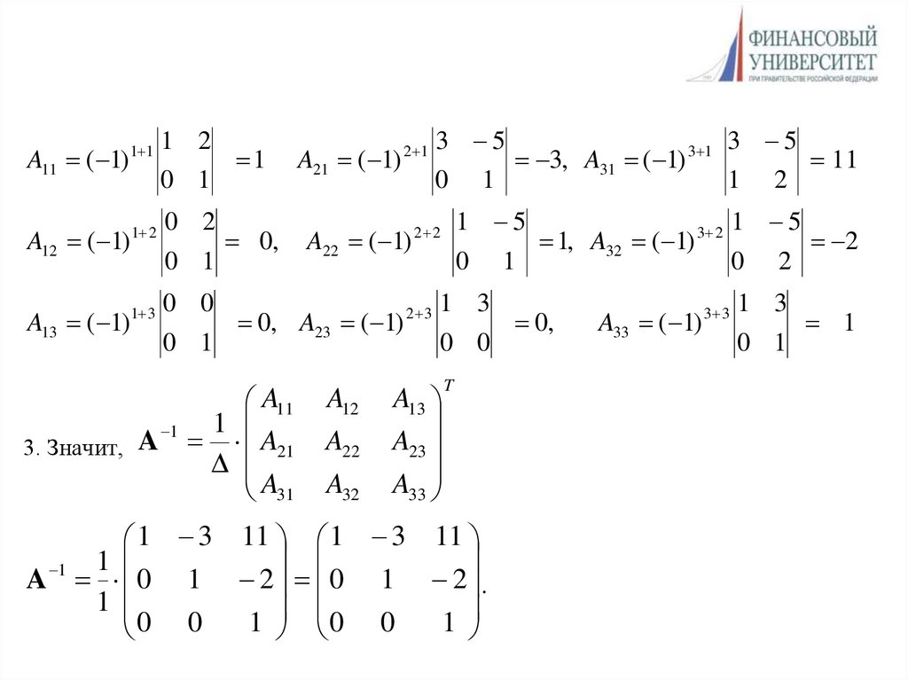 собой определитель, полученный из detA заменой элемента aij на единицу, а всех остальных