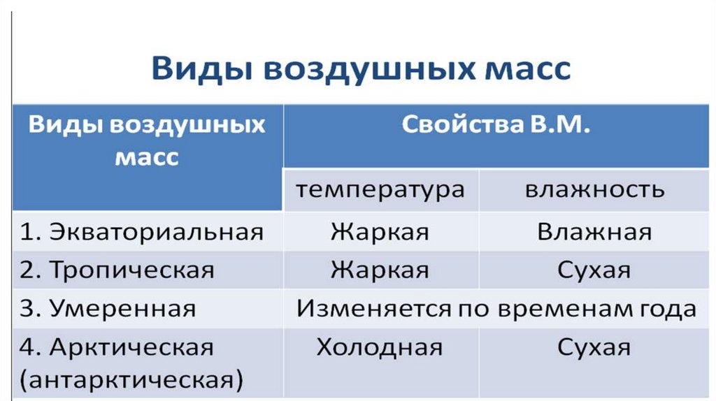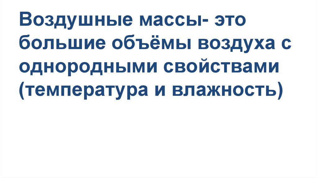 Воздушные массы- этобольшие объёмы воздуха с