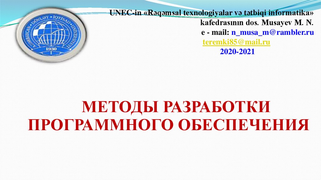 UNEC-in «Rəqəmsal texnologiyalar və tətbiqi informatika»kafedrasının dos. Musayev M. N.