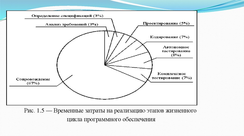 Рис. 1.5 — Временные затраты на реализацию этапов жизненногоцикла программного обеспечения