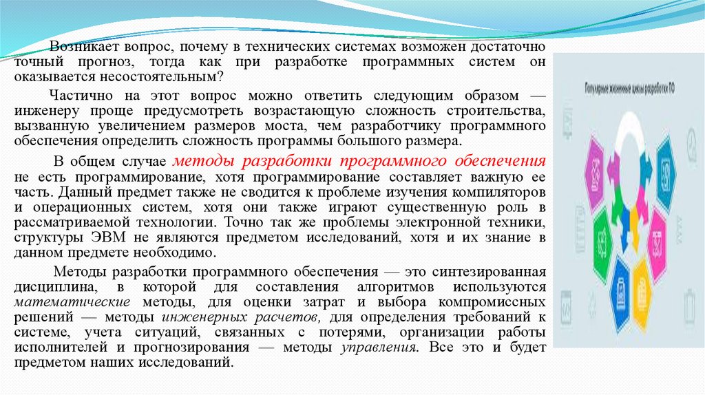 Возникает вопрос, почему в технических системах возможен достаточноточный прогноз, тогда как при разработке программных систем он