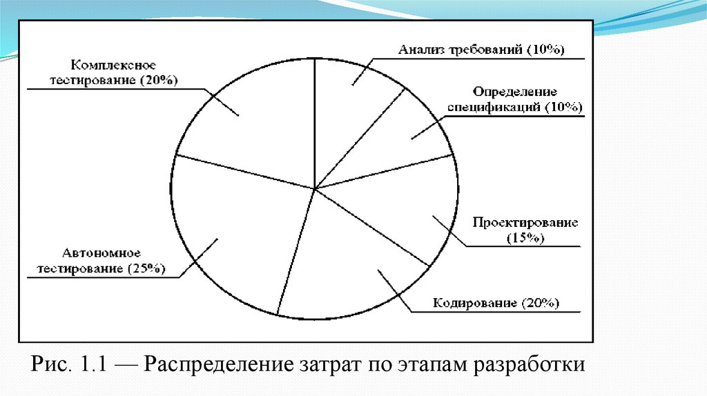 Рис. 1.1 — Распределение затрат по этапам разработки8.