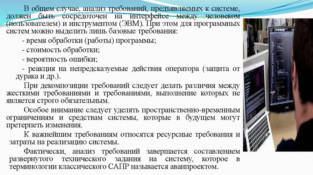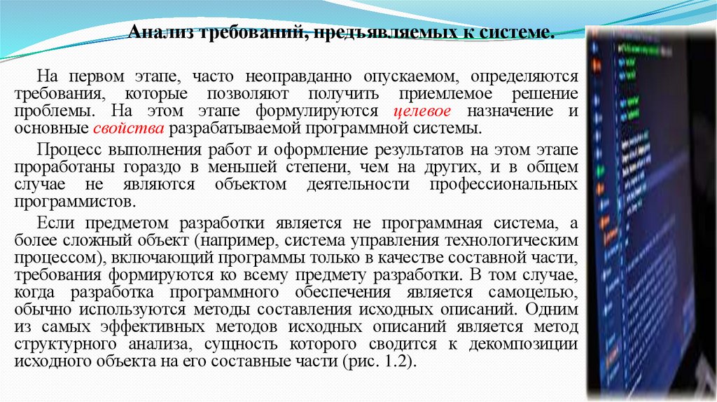 Анализ требований, предъявляемых к системе.На первом этапе, часто неоправданно опускаемом, определяются