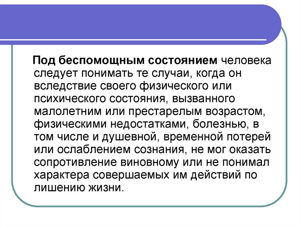 Объективная сторона преступления характеризуется бездействием заведомым оставлением потерпевшего без помощи.