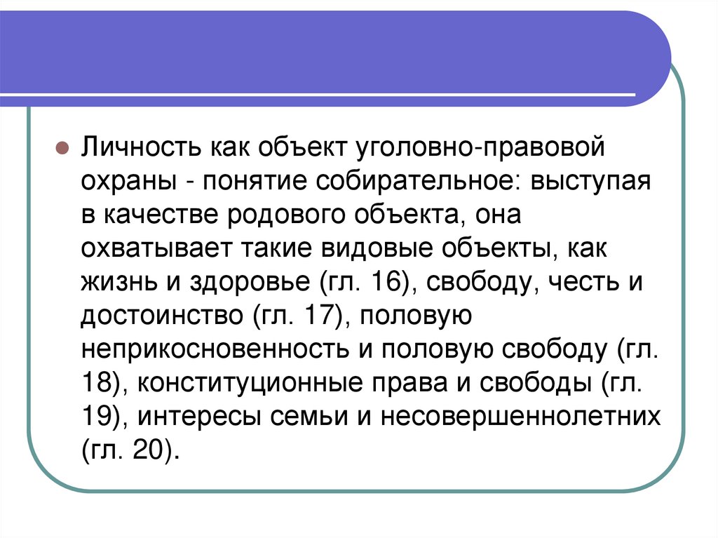 Личность как объект уголовно-правовойохраны - понятие собирательное: выступая