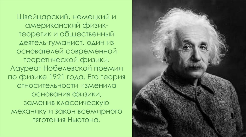 Швейцарский, немецкий иамериканский физиктеоретик и общественный
