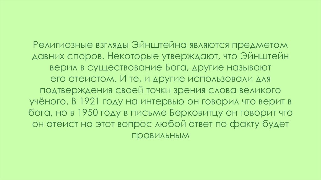 Религиозные взгляды Эйнштейна являются предметомдавних споров. Некоторые утверждают, что Эйнштейн