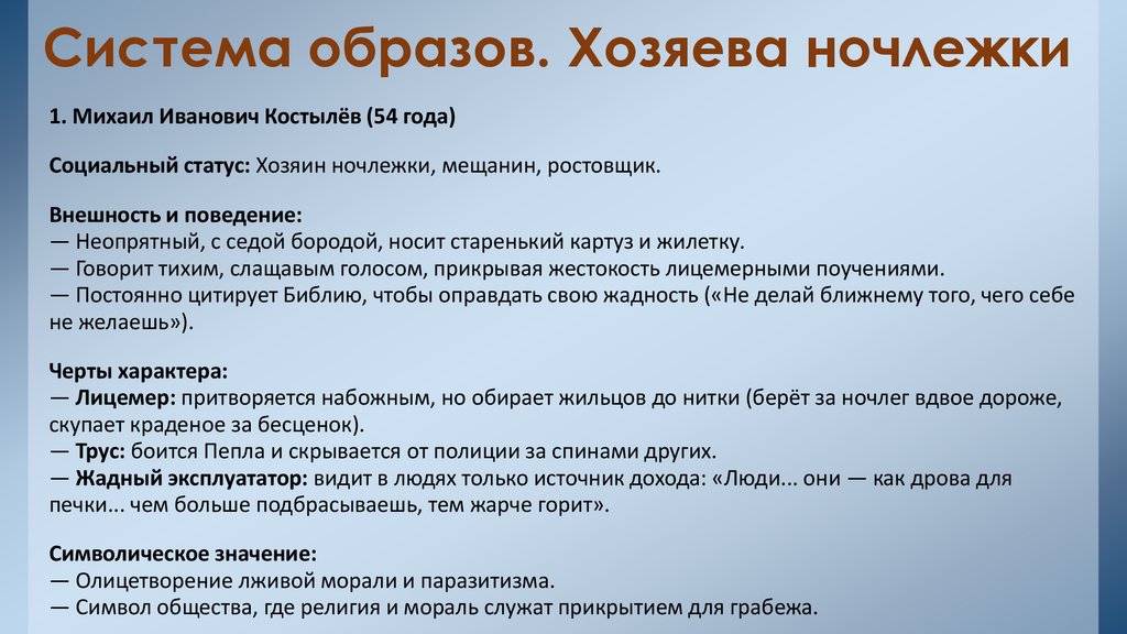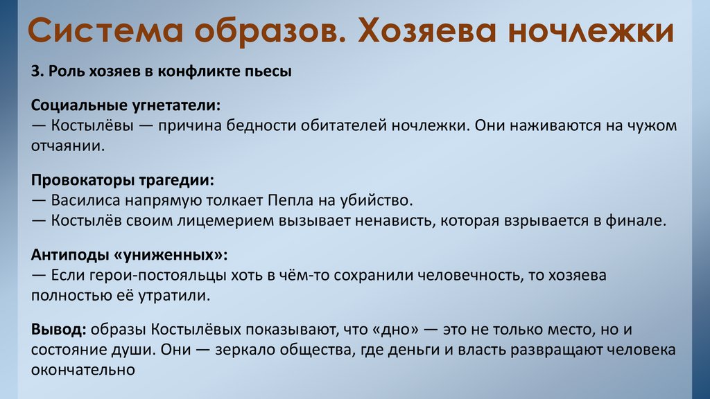 Система образов. Хозяева ночлежки3. Роль хозяев в конфликте пьесы
