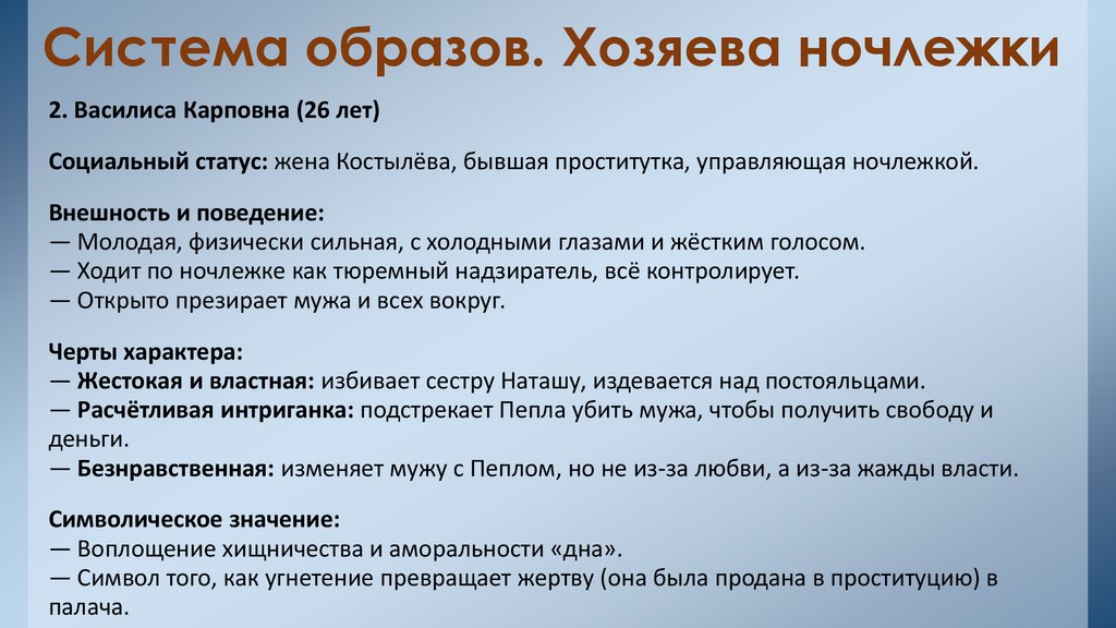 Система образов. Хозяева ночлежки2. Василиса Карповна (26 лет)