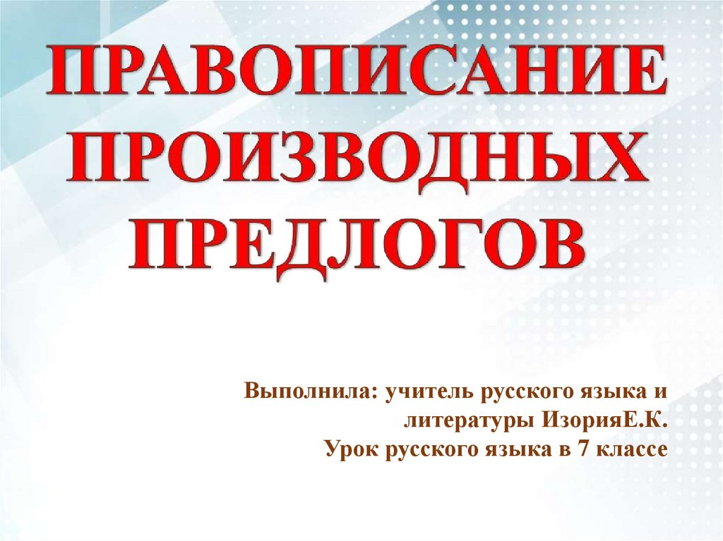 Презентация по русскому языку на тему _Правописание предлогов_ (7 класс)