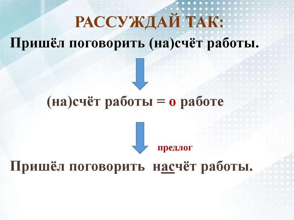 РАССУЖДАЙ ТАК:Пришёл поговорить (на)счёт работы.