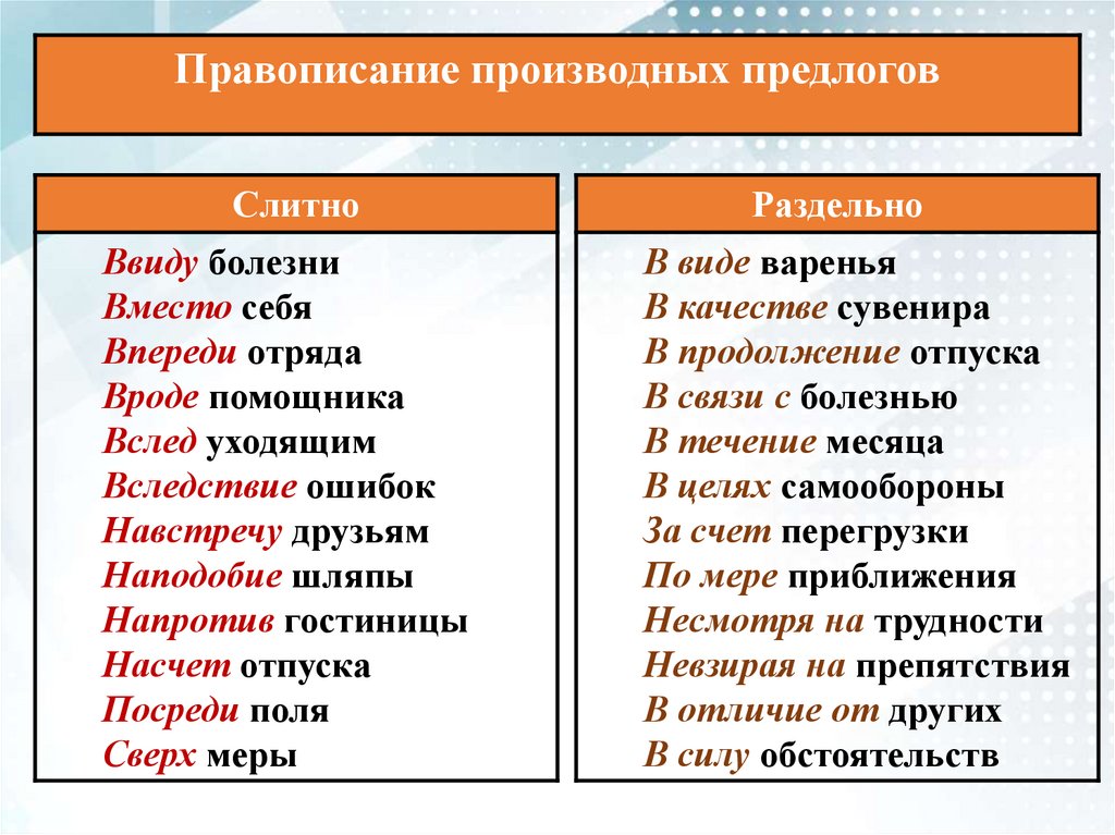 11. ПРАВОПИСАНИЕ ПРОИЗВОДНЫХ ПРЕДЛОГОВ