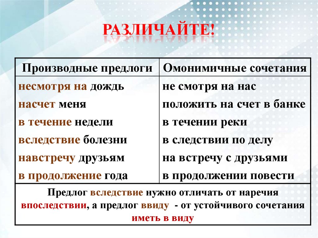 9. ОТЛИЧИЕ ПРЕДЛОГОВ ОТ СУЩЕСТВИТЕЛЬНЫХ