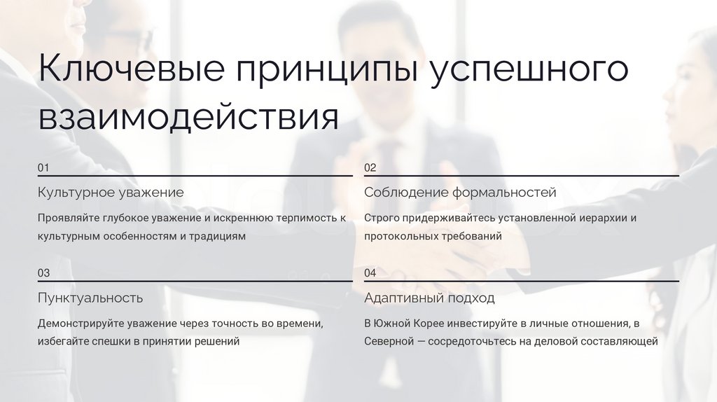 Ключевые аспекты корейской деловой культурыУстановление контакта