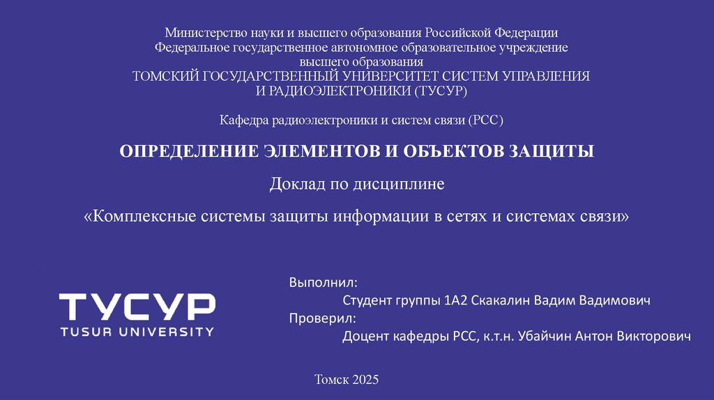 «ОПРЕДЕЛЕНИЕ ЭЛЕМЕНТОВ И ОБЪЕКТОВ ЗАЩИТЫ»Доклад по дисциплине