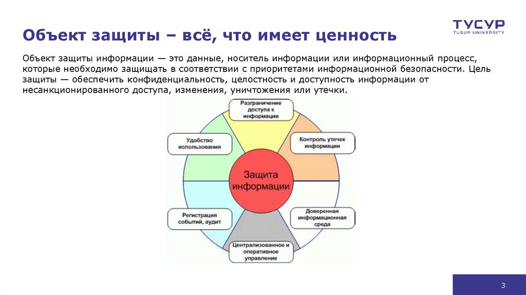 Объект защиты – всё, что имеет ценностьОбъект защиты информации — это данные, носитель информации или информационный процесс,
