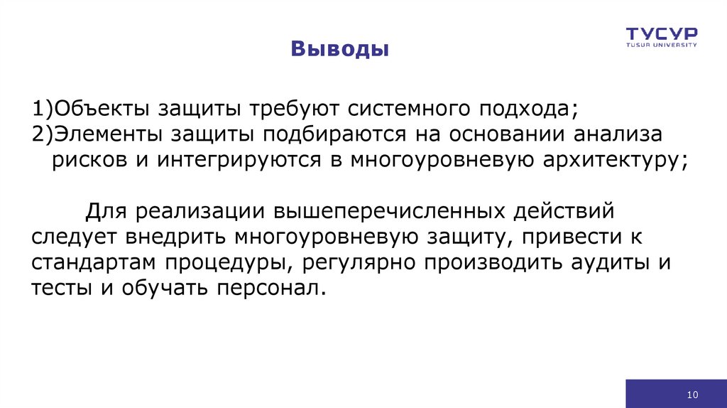 защиты — обеспечить конфиденциальность, целостность и доступность информации от