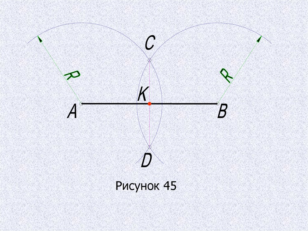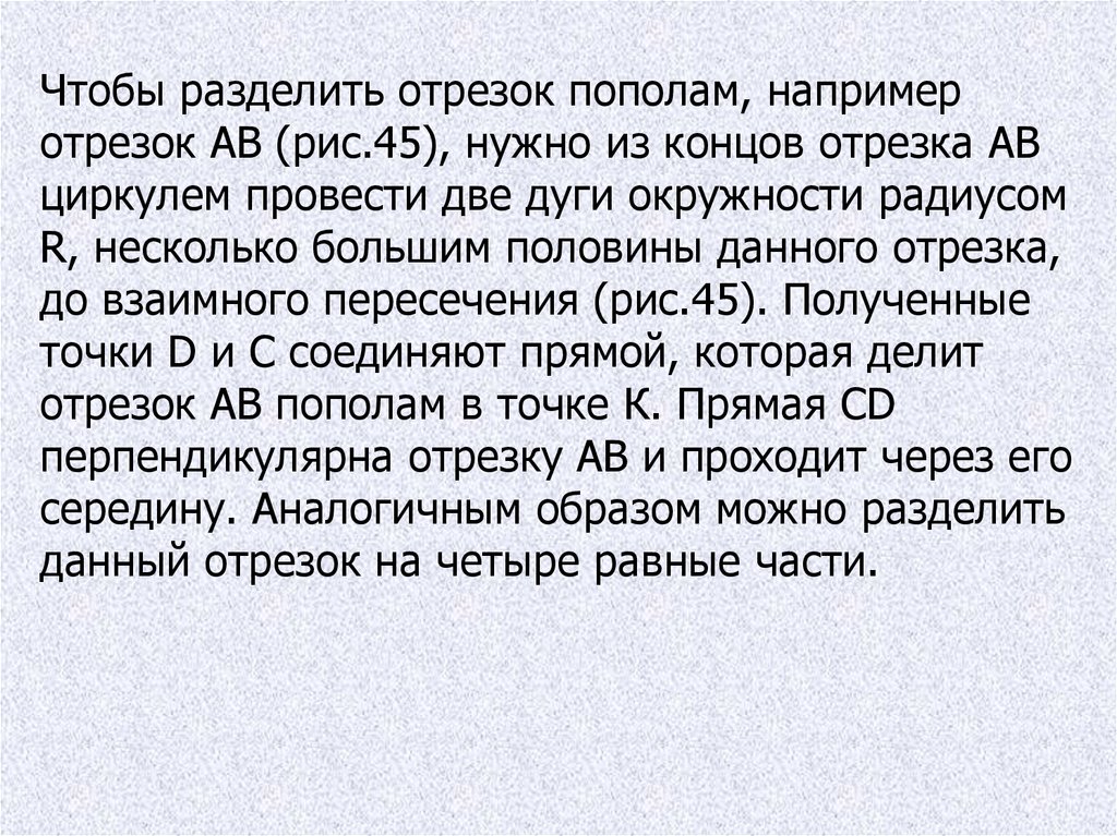 Чтобы разделить отрезок пополам, напримеротрезок АВ (рис.45), нужно из концов отрезка АВ
