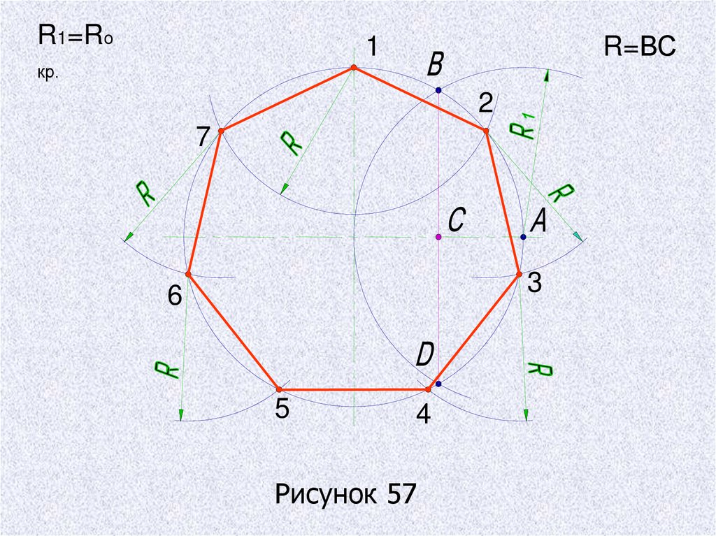 дугу окружности RC и получают точки сопряжения
