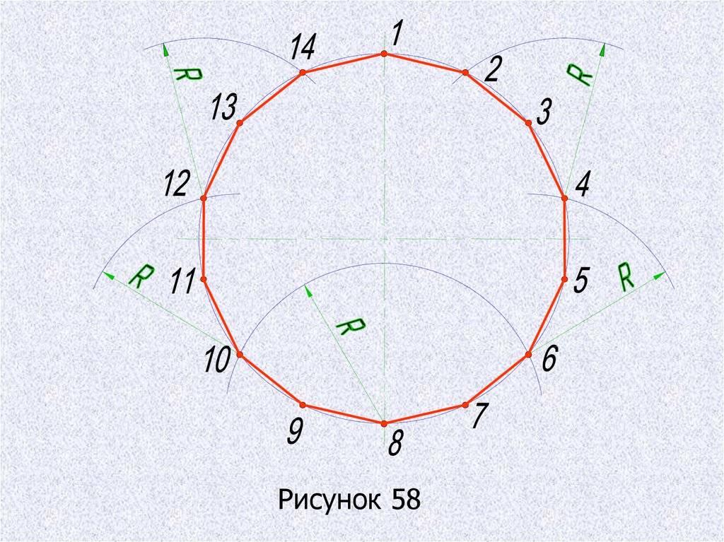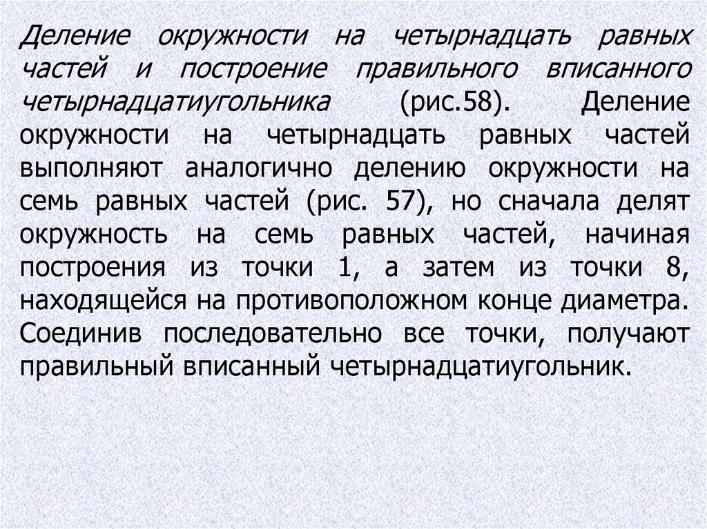 Деление окружности на четырнадцать равныхчастей и построение правильного вписанного