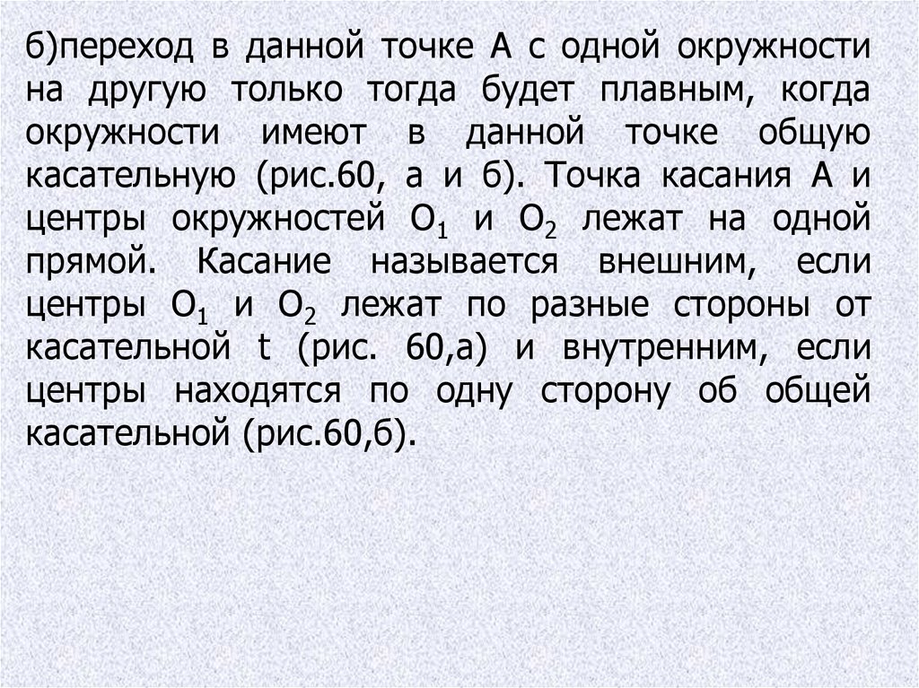 б)переход в данной точке А с одной окружностина другую только тогда будет плавным, когда