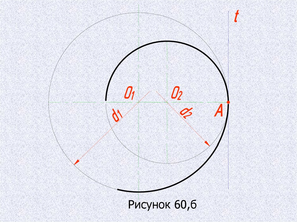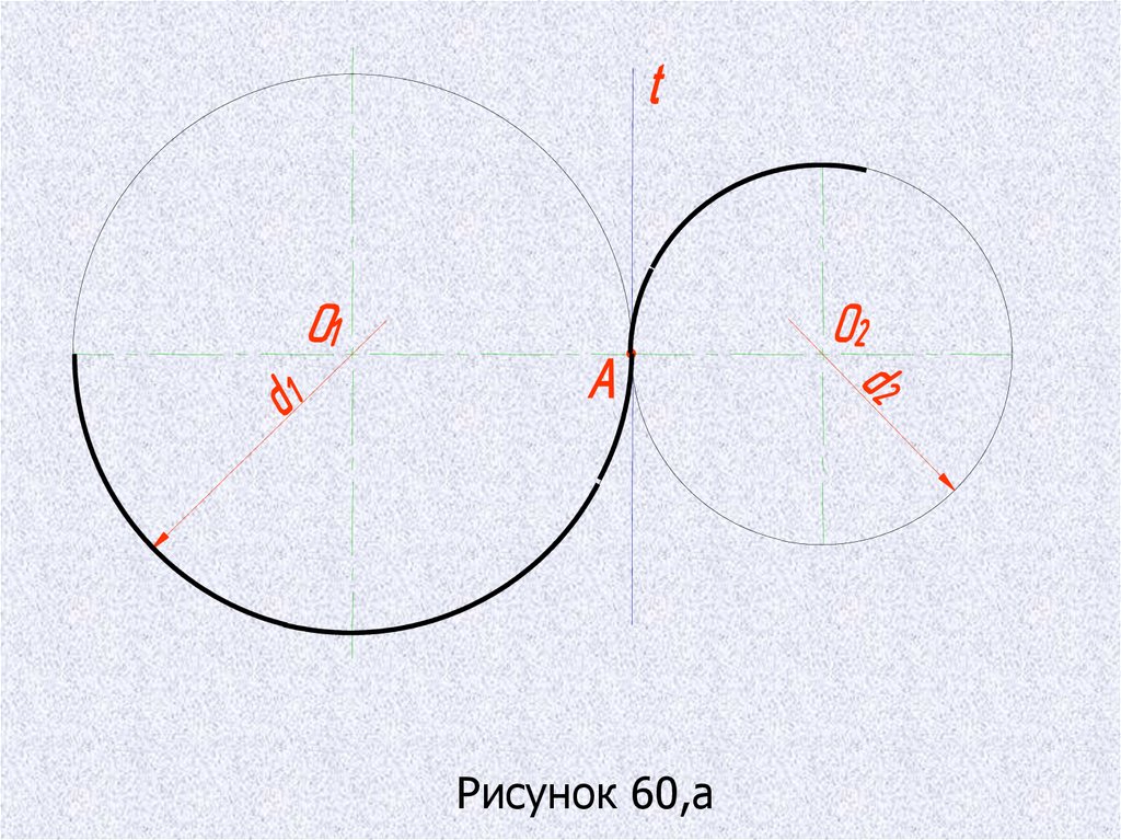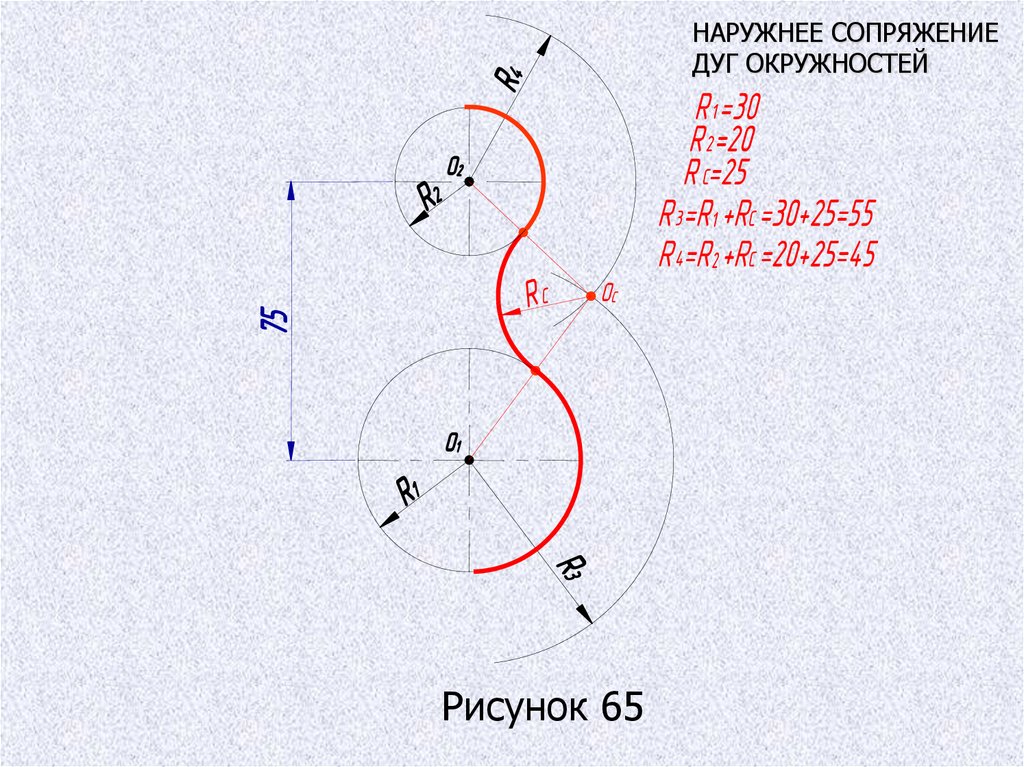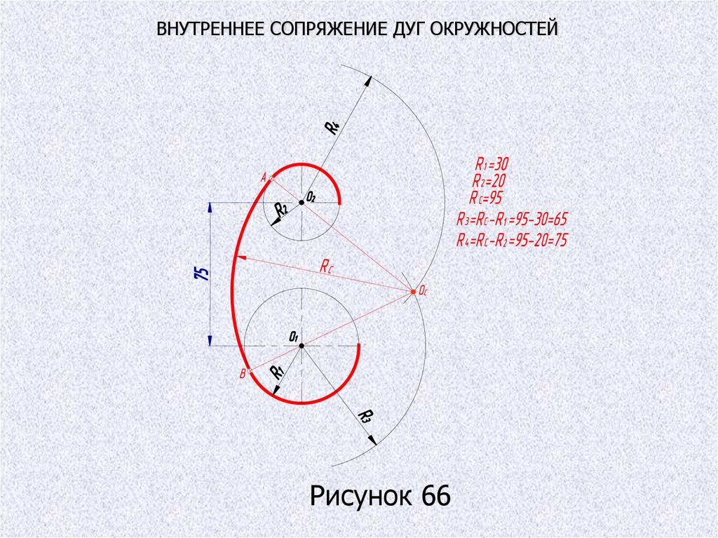 ВНУТРЕННЕЕ СОПРЯЖЕНИЕ ДУГ ОКРУЖНОСТЕЙРисунок 66