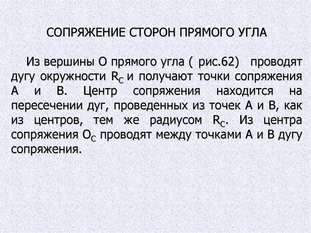 СОПРЯЖЕНИЕ СТОРОН ПРЯМОГО УГЛАИз вершины О прямого угла ( рис.62) проводят