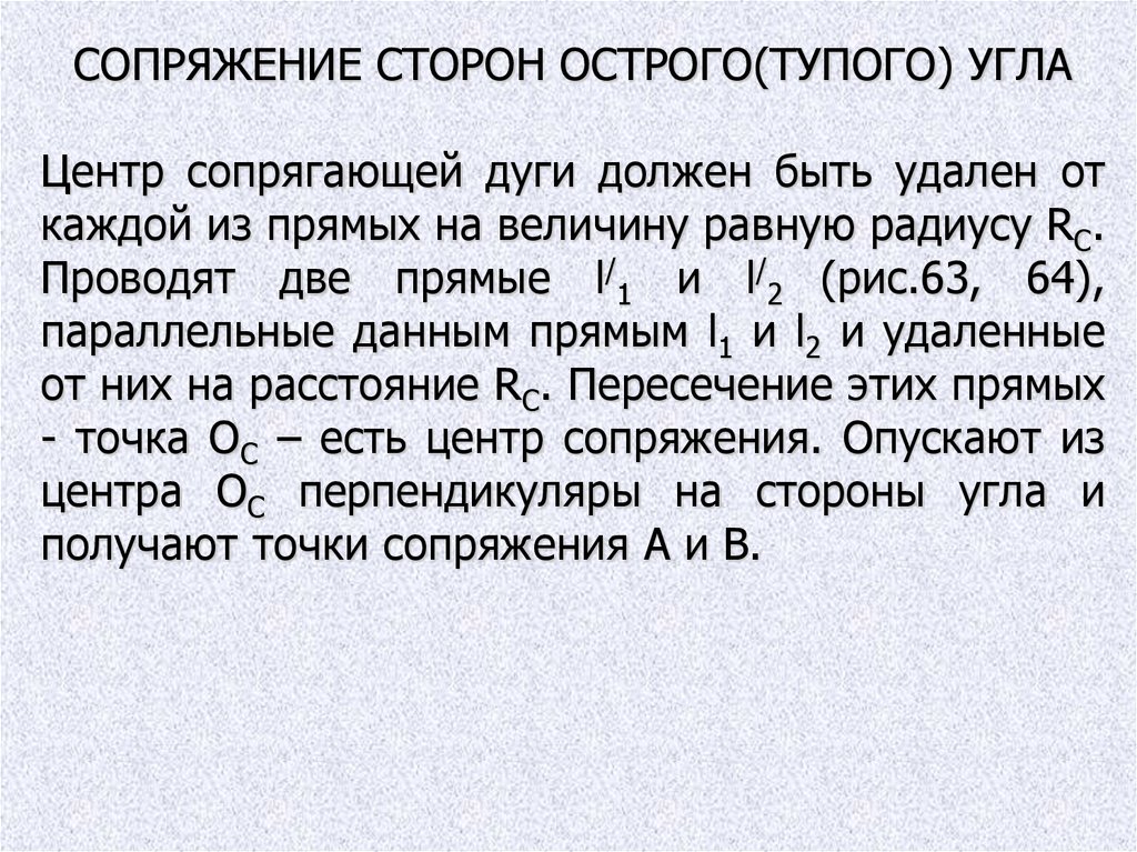 СОПРЯЖЕНИЕ СТОРОН ОСТРОГО(ТУПОГО) УГЛАЦентр сопрягающей дуги должен быть удален от