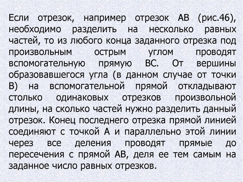 Если отрезок, например отрезок АВ (рис.46),необходимо разделить на несколько равных