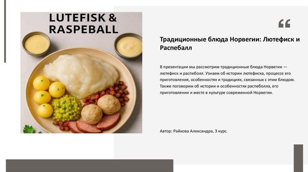 В презентации мы рассмотрим традиционные блюда Норвегии —