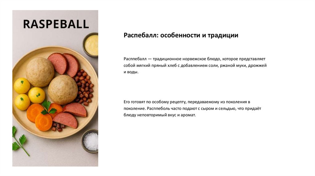 История РаспебаллаРаспебалл — традиционное норвежское блюдо, которое представляет