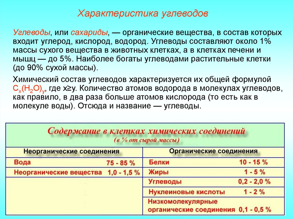 входит углерод, кислород, водород. Углеводы составляют около 1%