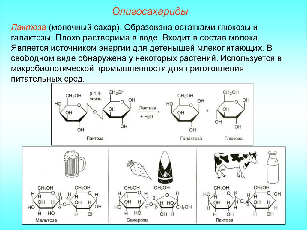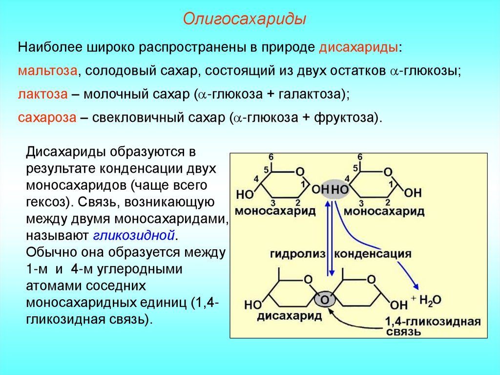 молекулы олигосахаридов, различают дисахариды, трисахариды,