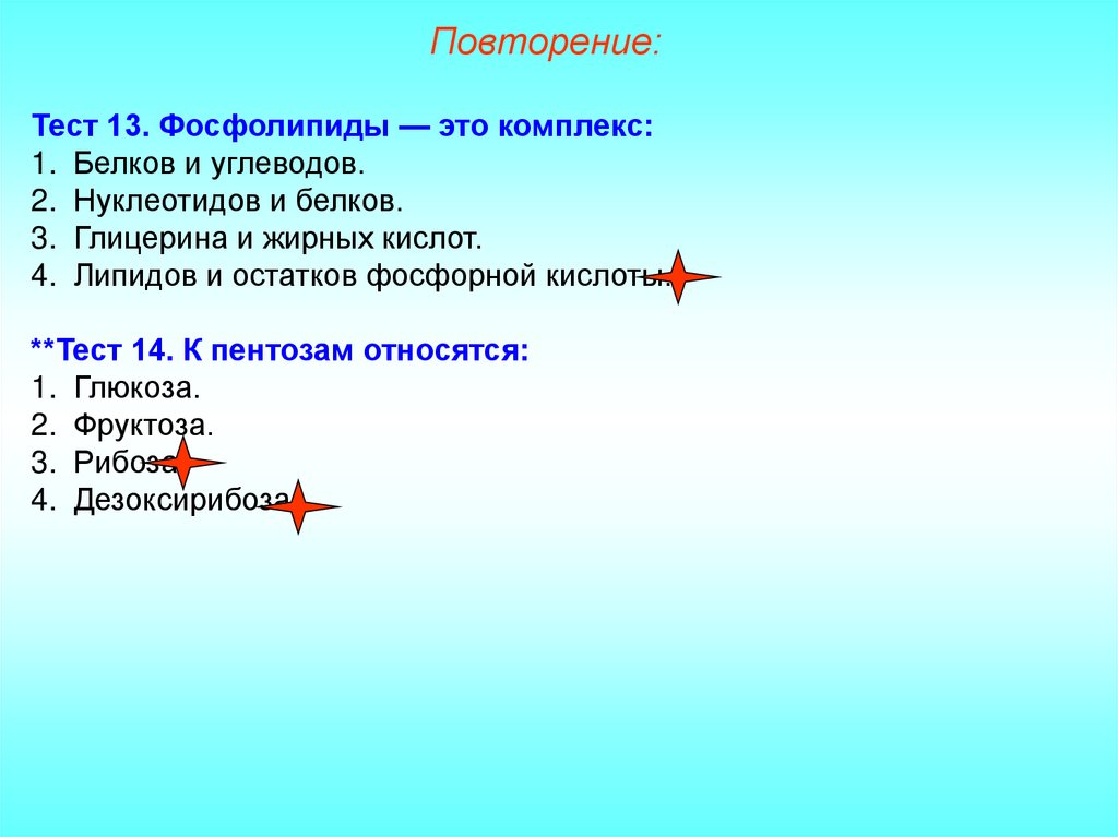 Повторение:Тест 13. Фосфолипиды — это комплекс:
