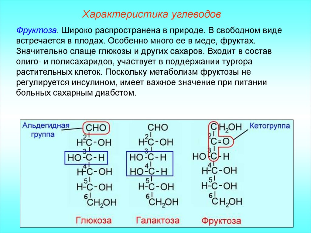 Характеристика углеводовФруктоза. Широко распространена в природе. В свободном виде