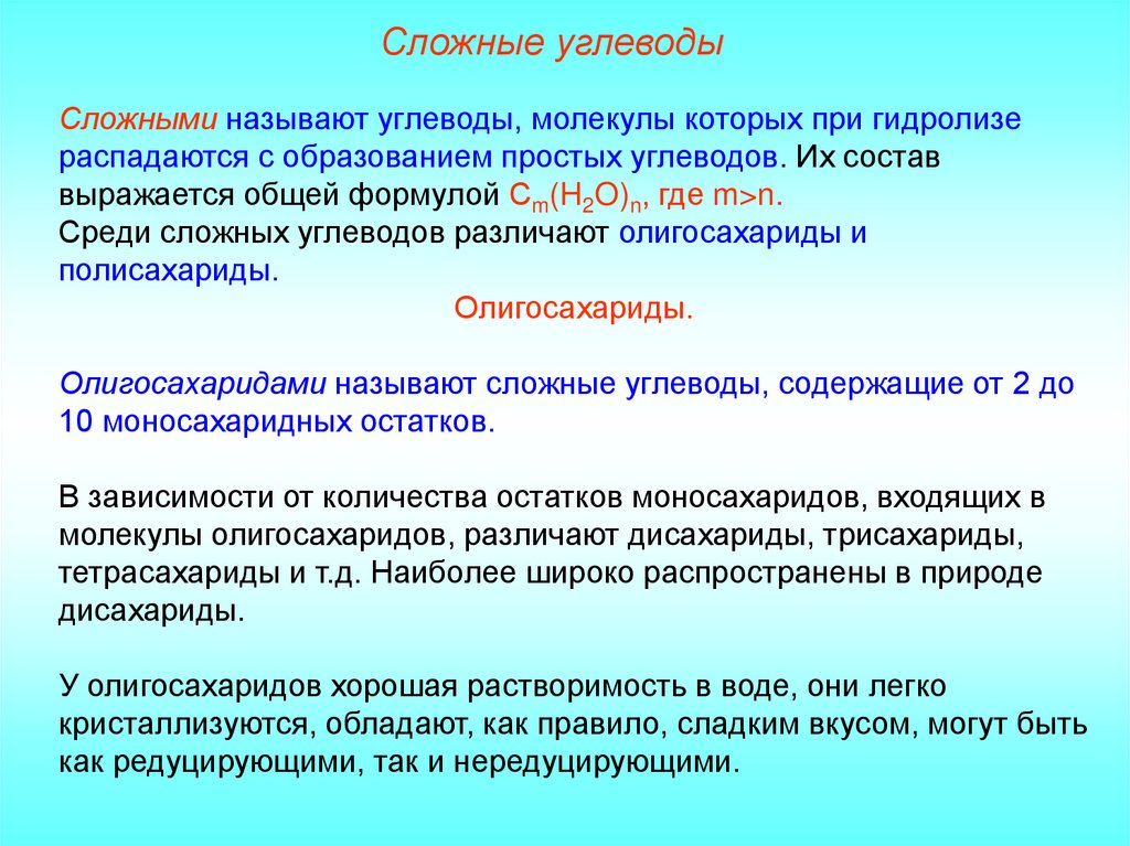 Сложные углеводыСложными называют углеводы, молекулы которых при гидролизе