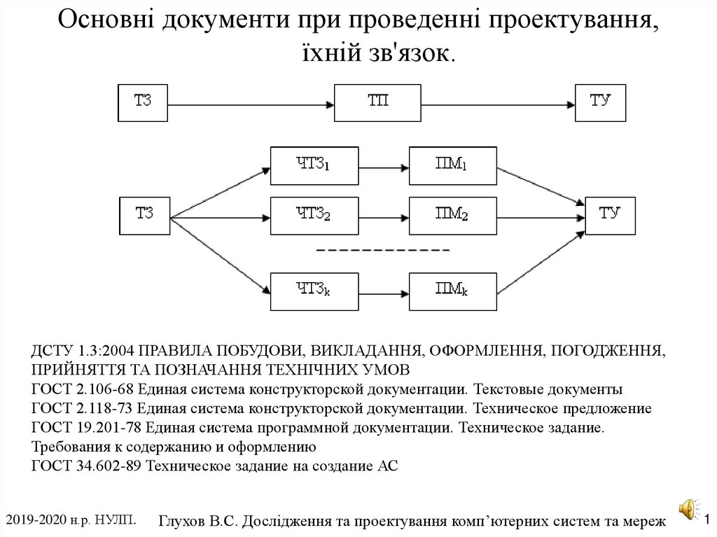 1. Основні документи при проведенні проектування, їхній зв'язок.